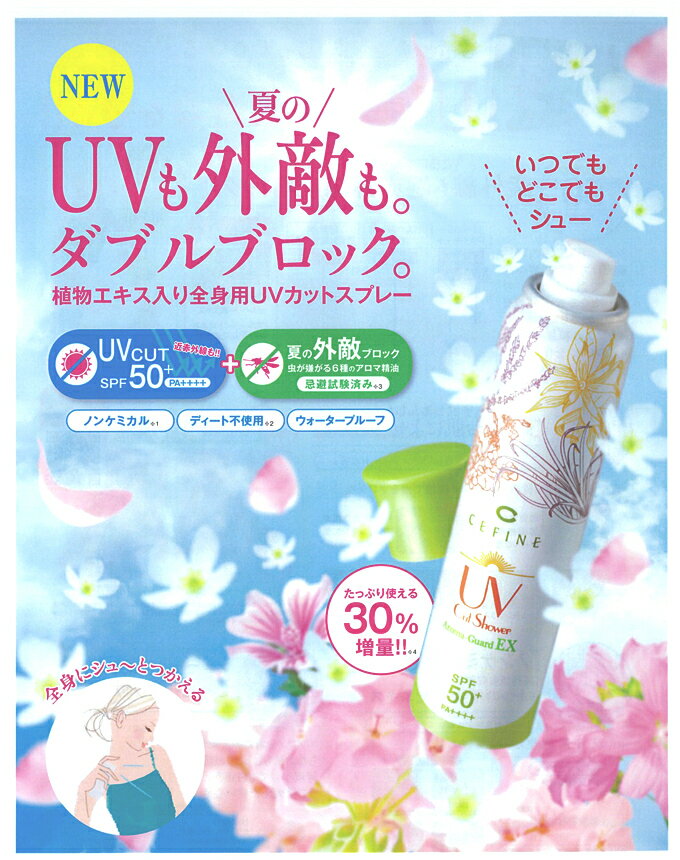 【ノンケミカル・日焼け止め&虫除けスプレー】 UVカットシャワー アロマガード EX 肌にやさしく、赤ちゃんにも使えます 紫外線カット ノンディート セフィーヌ アロマ 蚊よけ 日焼け止め スプレー SPF50+ PA++++