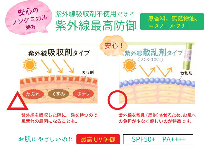 お肌にやさしくてもSPF50とPA++++でしっかりと紫外線からお肌を守ります。